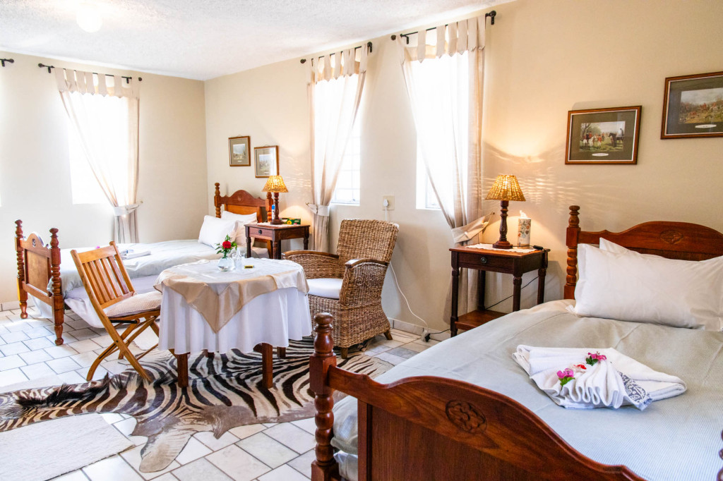 Our accommodation and fine cuisine will meet the needs of even the most discerning guest. Schoenfeld has ten luxurious, elegantly furnished double rooms, as well as two family rooms and one room adapted for the disabled, all with en-suite bathrooms and amenities such as ceiling fans/air conditioning and safes.