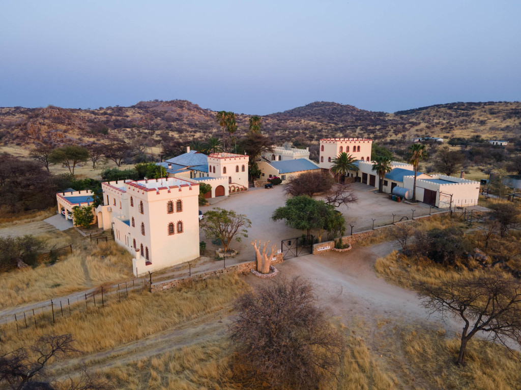 The farm extends over 11,000 hectares with an estate surrounded by breathtaking nature with a view of its own “Okongue” mountain, which is surrounded by a seemingly endless savannah. The striking Seydlitz Castle, with its white towers and charming interior, offers you the opportunity to enjoy your stay in style.